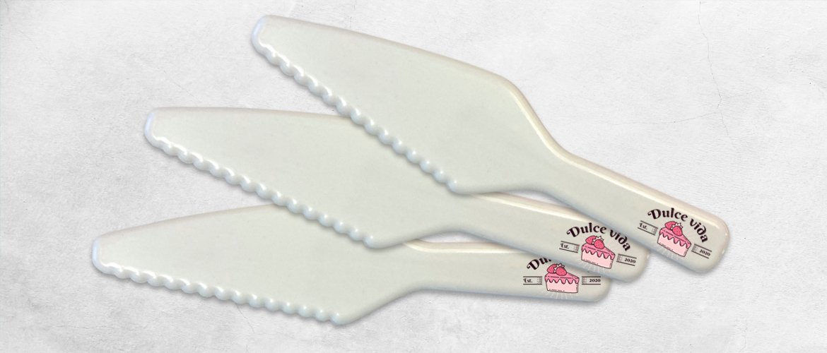Fabricamos y también distribuimos nuestra palita para pastel. Hecha de plástico suficientemente rígida para cortar y servir pastel, flan, gelatina y demás alimentos para compartir.